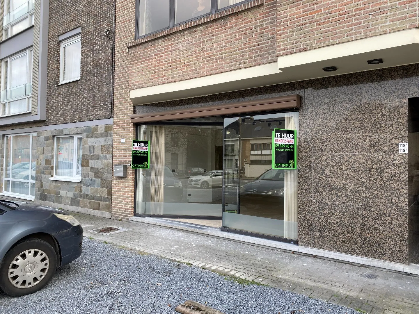 Dit commercieel handelspand is gelegen in het centrum van Olsene, op de baan tussen Waregem en Deinze. Het heeft enkele parkeerplaatsen voor de deur.