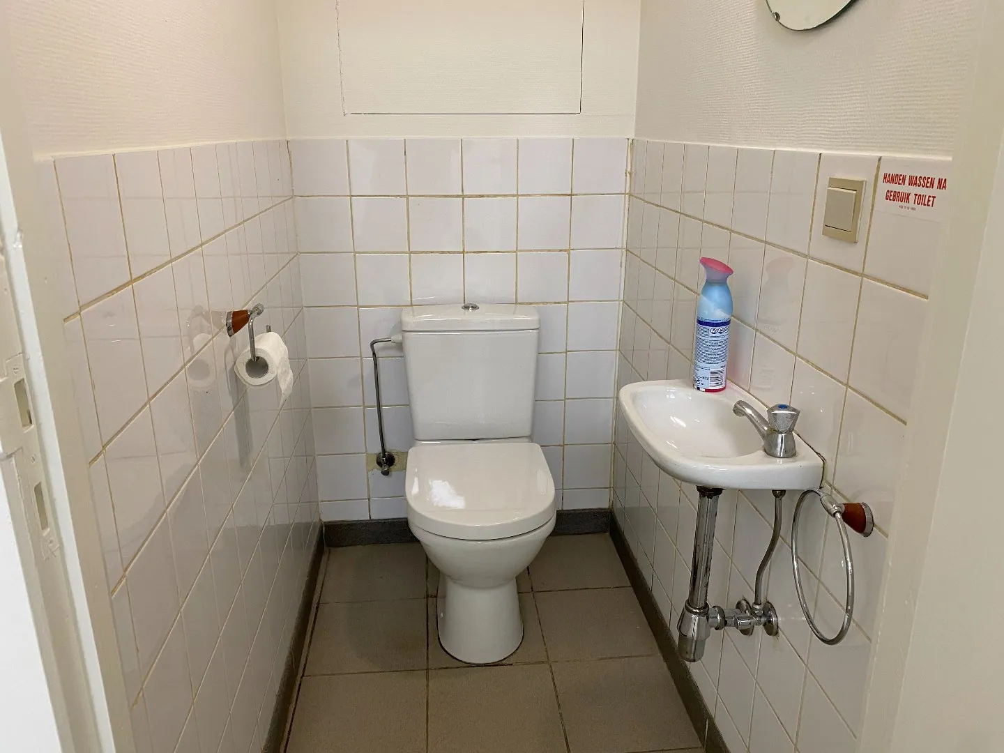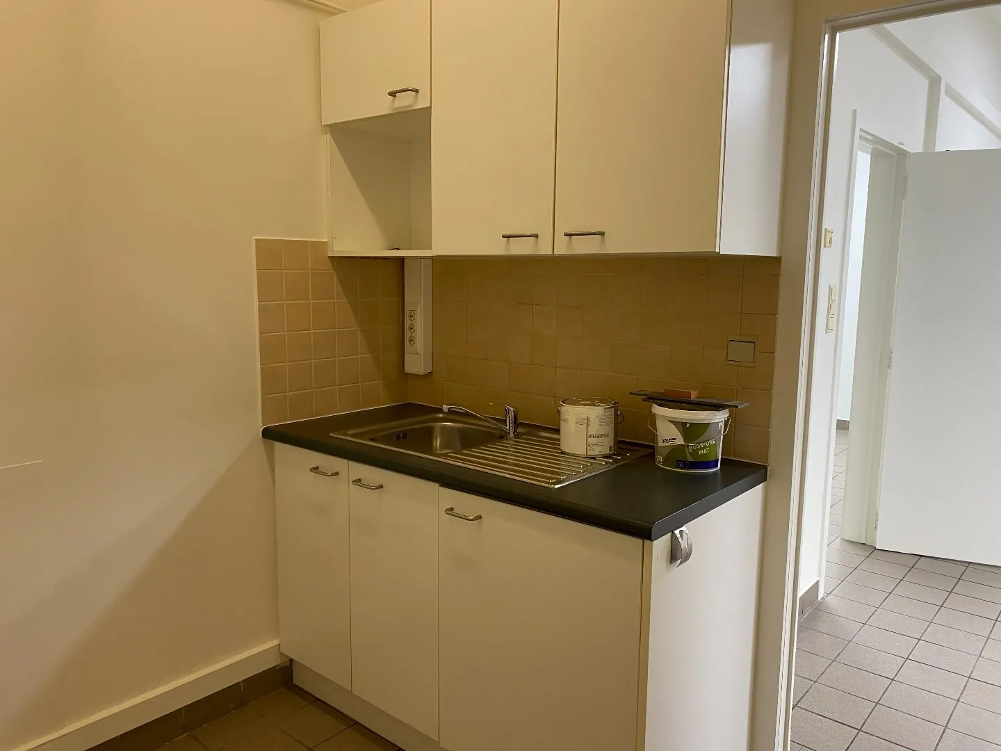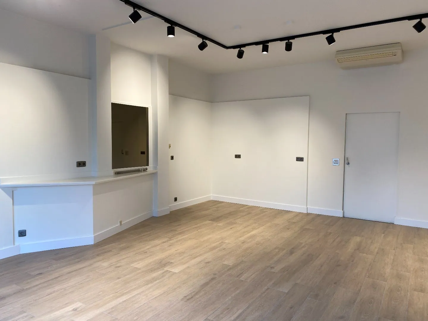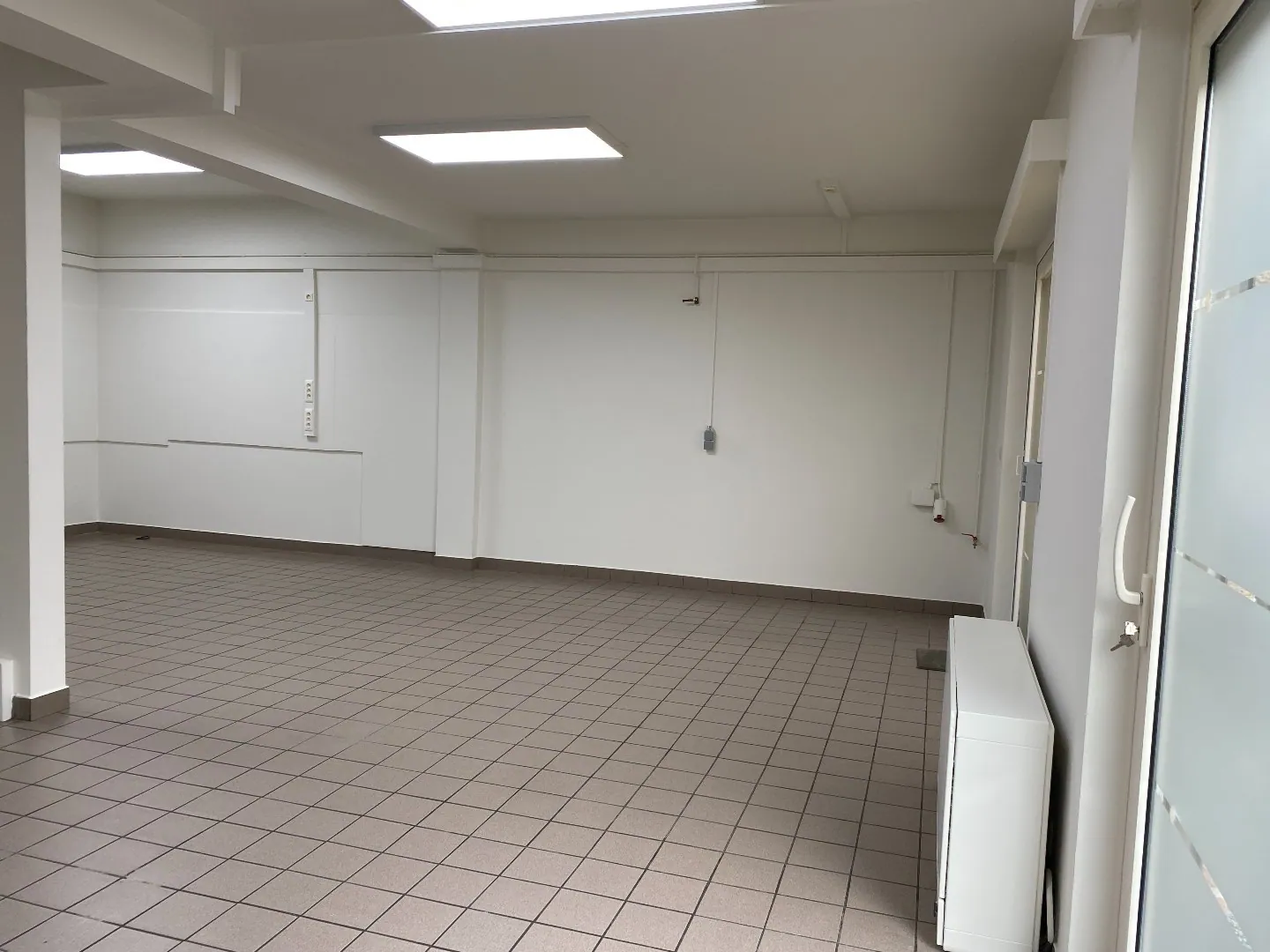 De winkelruimte vooraan is voorzien van een nieuwe tegelvloer in parketmotief. Alsook is het handelspand volledig instapklaar geschilderd.