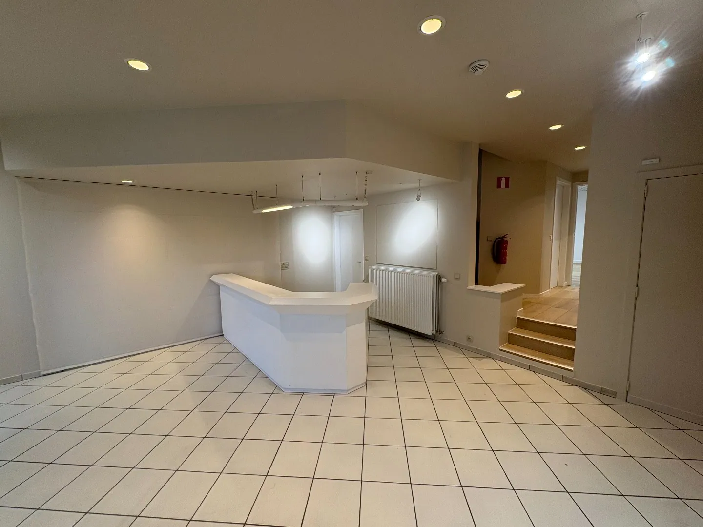 De verschillende kantoorruimtes zijn flexibel in te delen en baden in natuurlijk licht dankzij de grote ramen. Verder beschikt het pand over een praktische kitchenette en een ruime kelder (75 m²), ideaal voor opslag of archief.