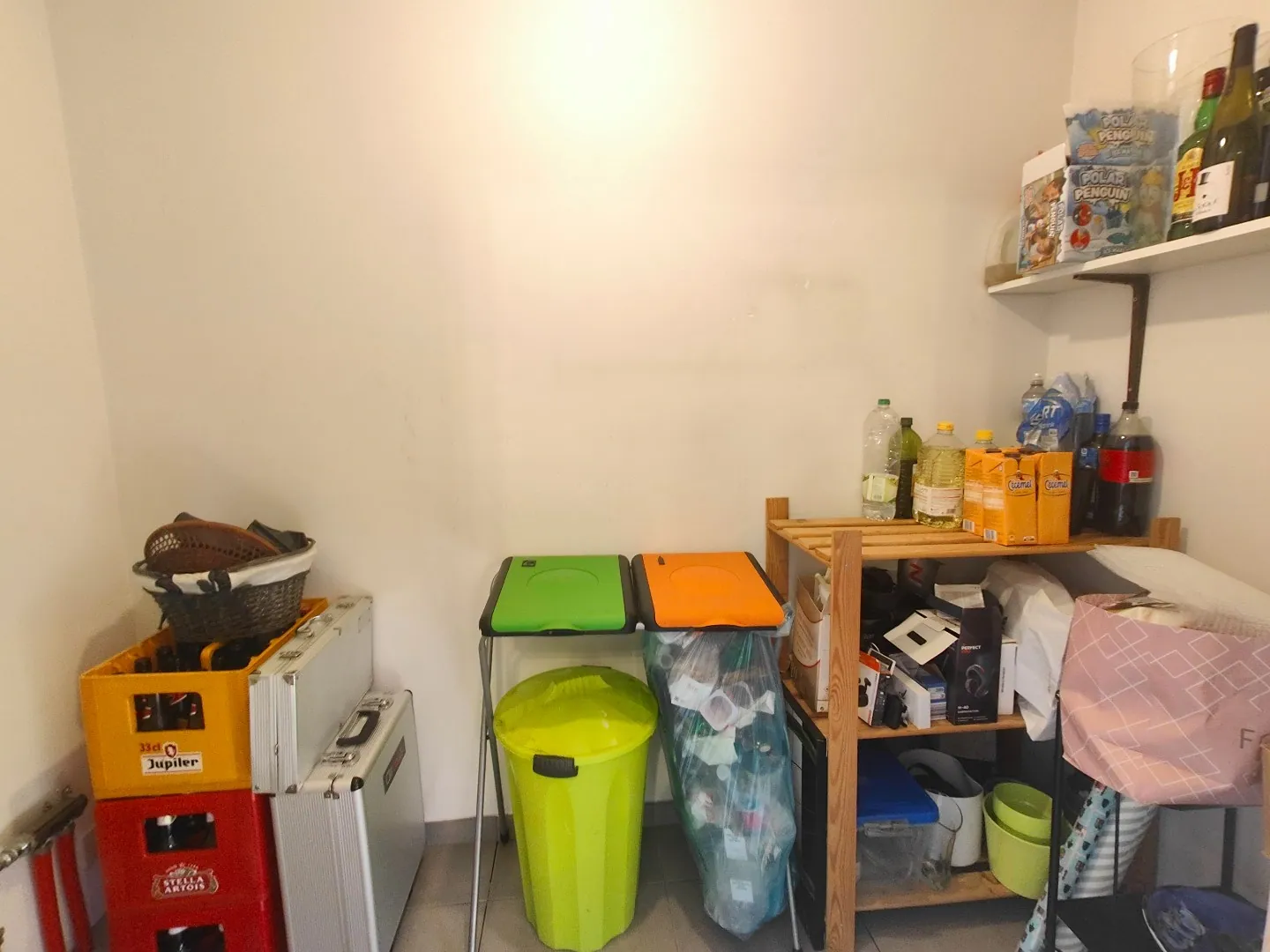 Binnen komt u in een ruime inkomhal, met aansluitend een aparte was- en stockageplaats. Vanuit deze ruimte heeft u directe toegang tot de achterliggende tuin met aangenaam terras, perfect om in alle rust te genieten.