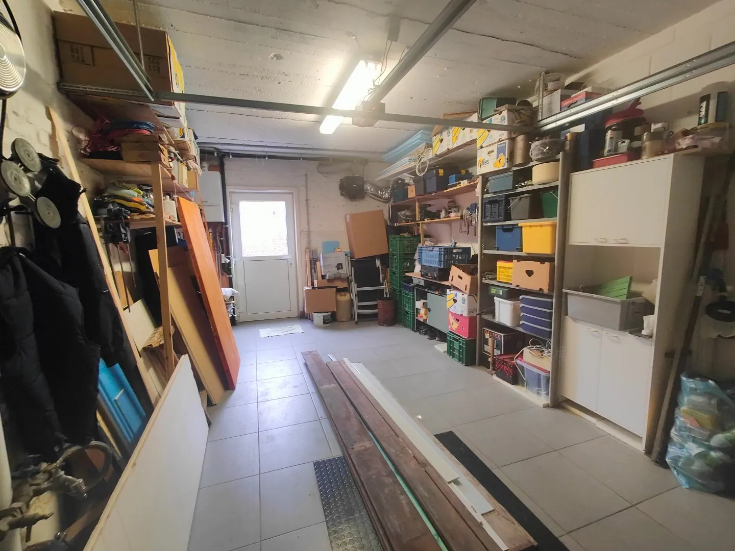 Via de inkomhal met handige berging bereik je de gelijkvloerse garage met automatische poort. Achteraan bevindt zich een ruim terras, ideaal om in alle rust te genieten.