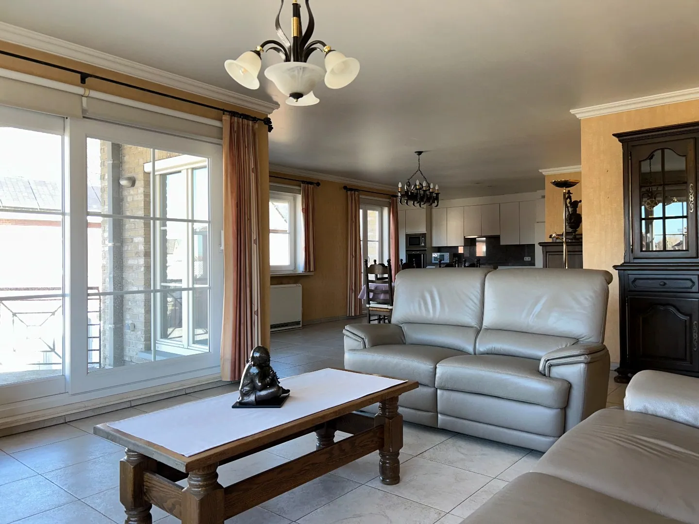 Het appartement heeft een mooie inkomhal met ruimte voor vestiaire, een gastentoilet met lavabo, drie volwaardige slaapkamers, een grote badkamer (met douche en extra toilet), hal met ingemaakte kast en een prachtige leefruimte met veel lichtinval.