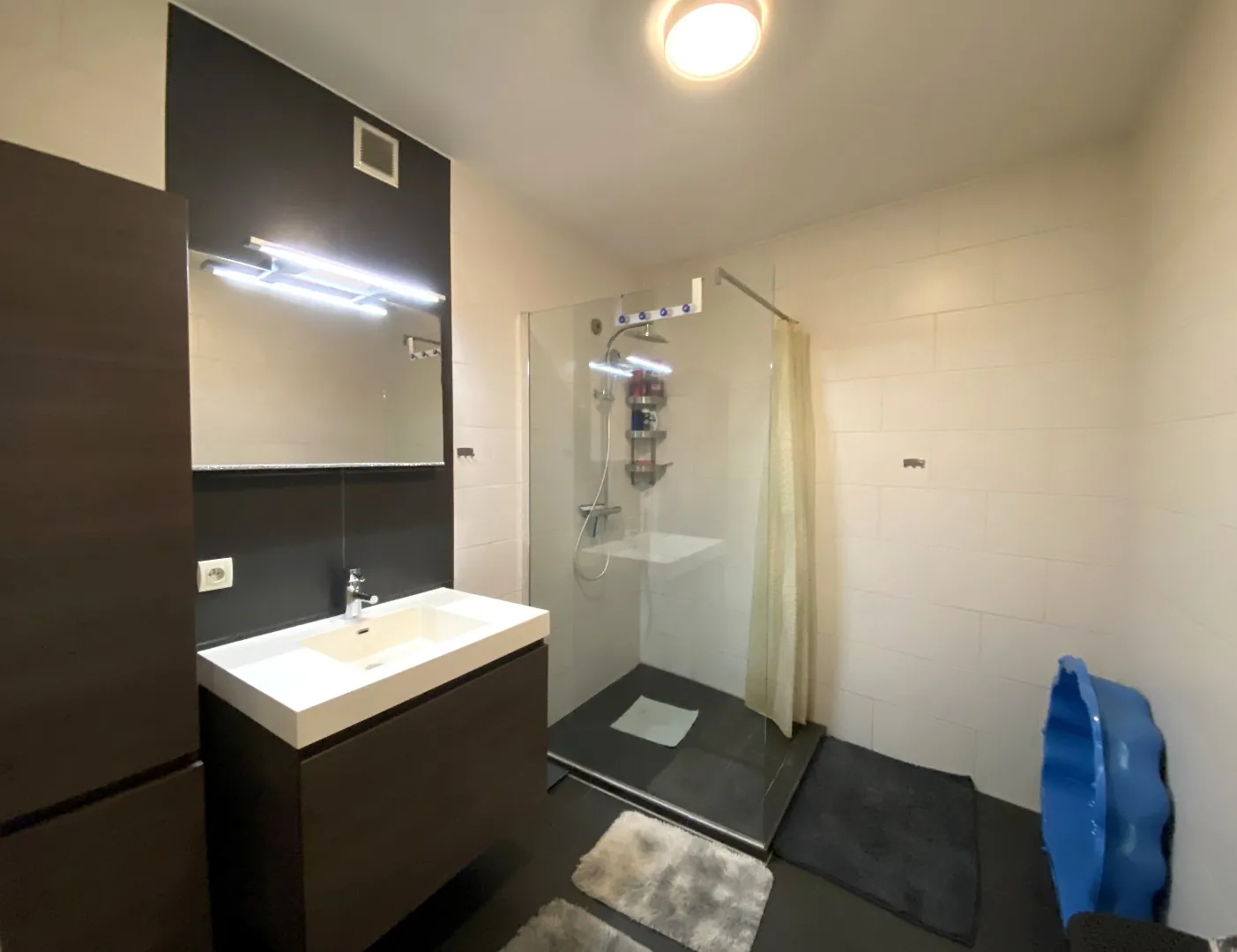 - Badkamer met lavabo en inloopdouche