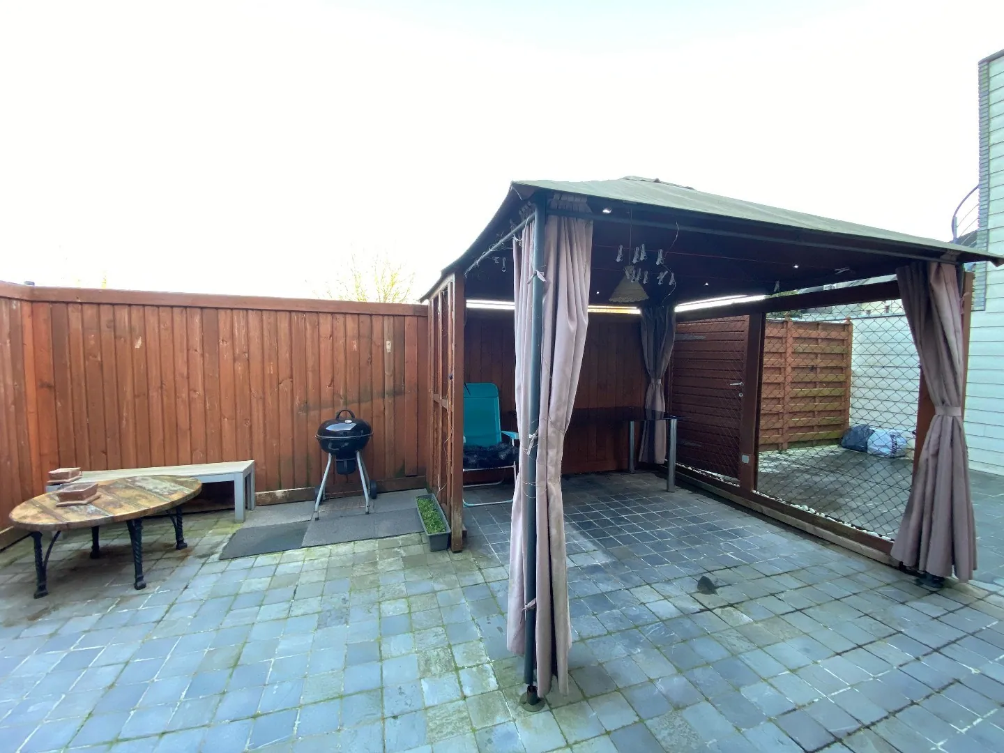 Buiten geniet u van een ruim privatief terras, volledig afgeschermd met hout voor maximale privacy. Via een poortje is er een handige uitweg richting de nabijgelegen garage.