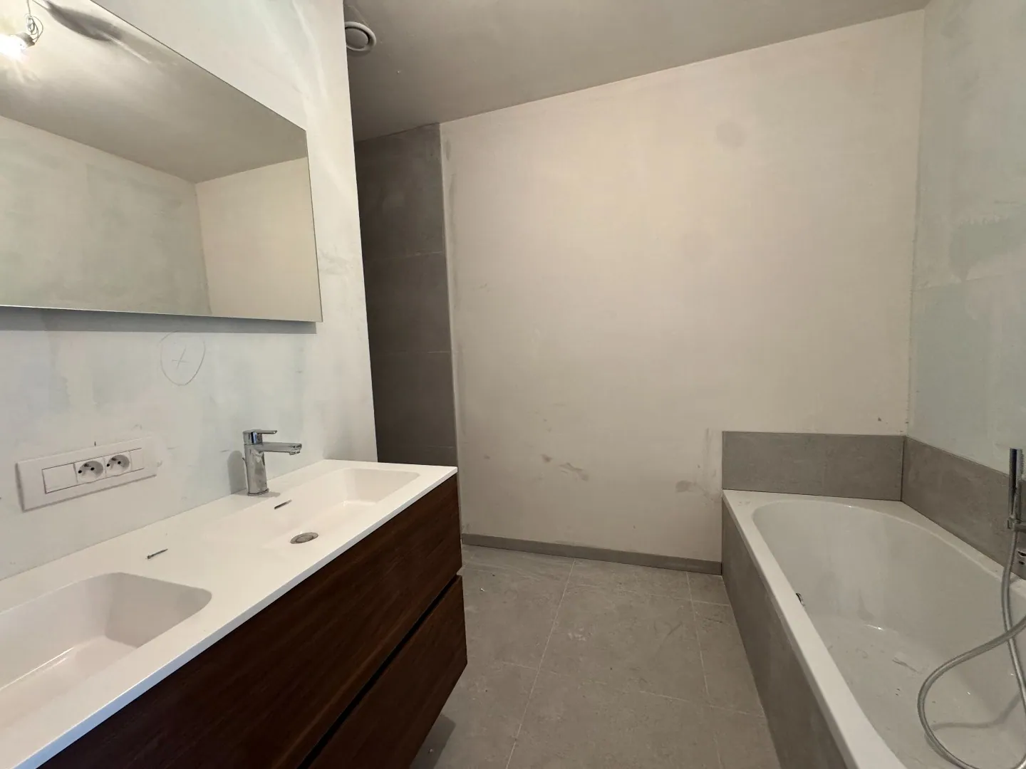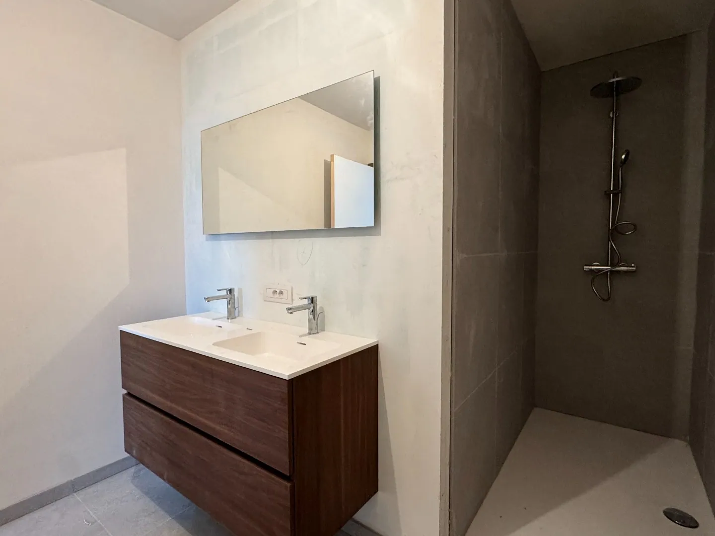 - Badkamer met dubbele lavabo en inloopdouche