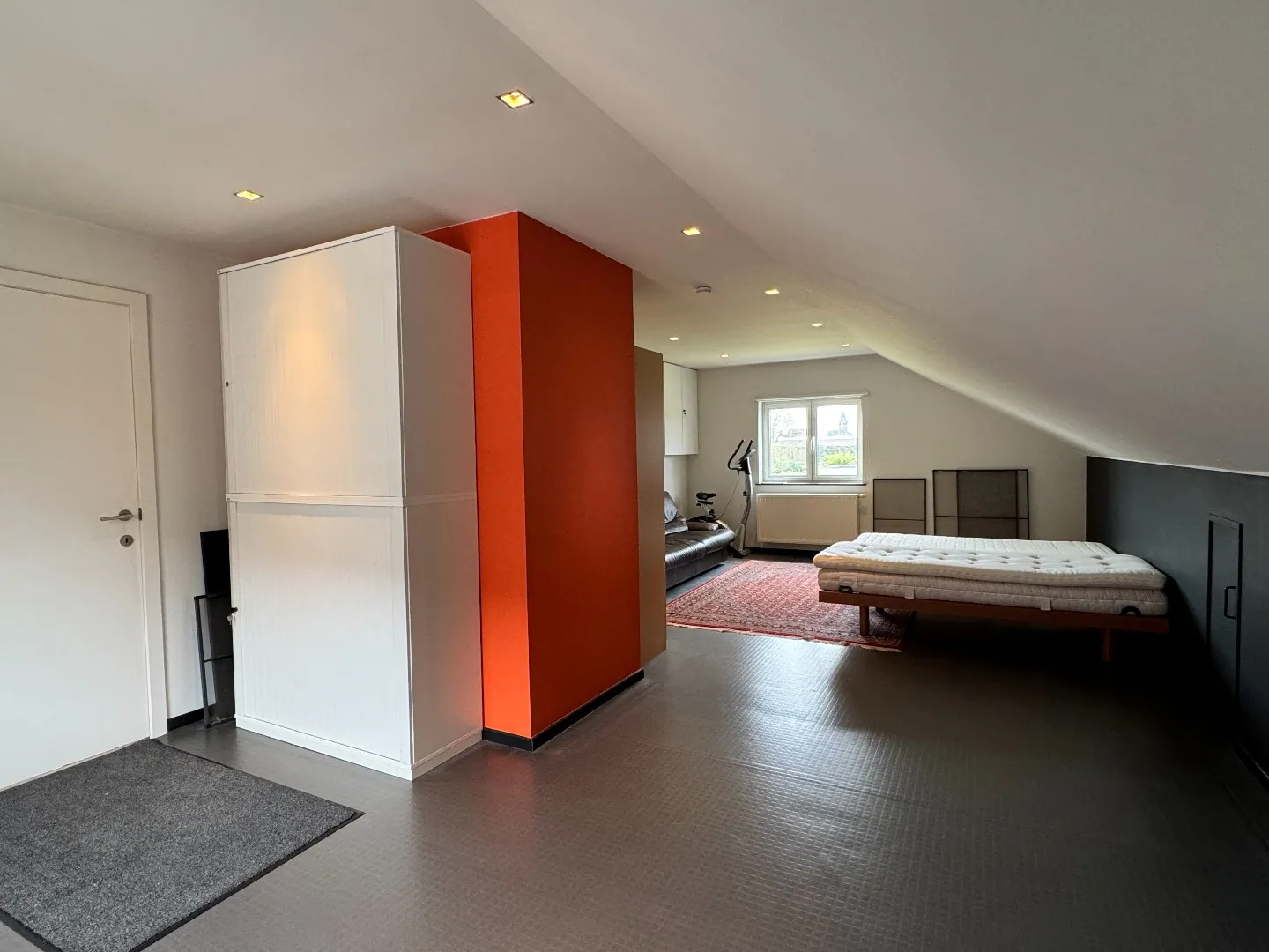 Een niveau hoger bevindt zich een ruime polyvalente ruimte die flexibel kan worden ingevuld als extra slaapkamers, hobbyruimte, bureau of ontspanningsruimte. Aansluitend is hier ook bijkomende zolderbergruimte.