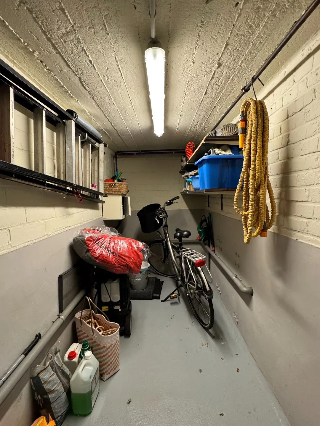 De kelderverdieping omvat de garage met geautomatiseerde poort, een vorstvrije oprit en twee extra bergruimtes.