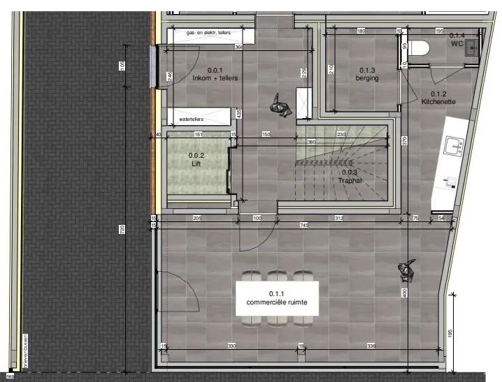 De handelsruimte is reeds afgewerkt met ventilatie, maatwerkkast, vloer, gyproc wanden schildersklaar en geberit toiletsysteem (excl toilet zelf). Er is mogelijkheid voor het plaatsen van een keukenblok.