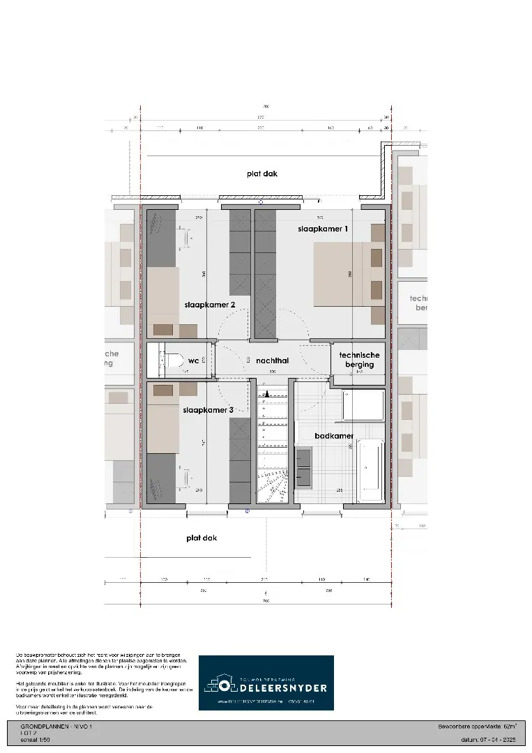 Drie volwaardige slaapkamers, nachthal, apart toilet, technische ruimte en badkamer.