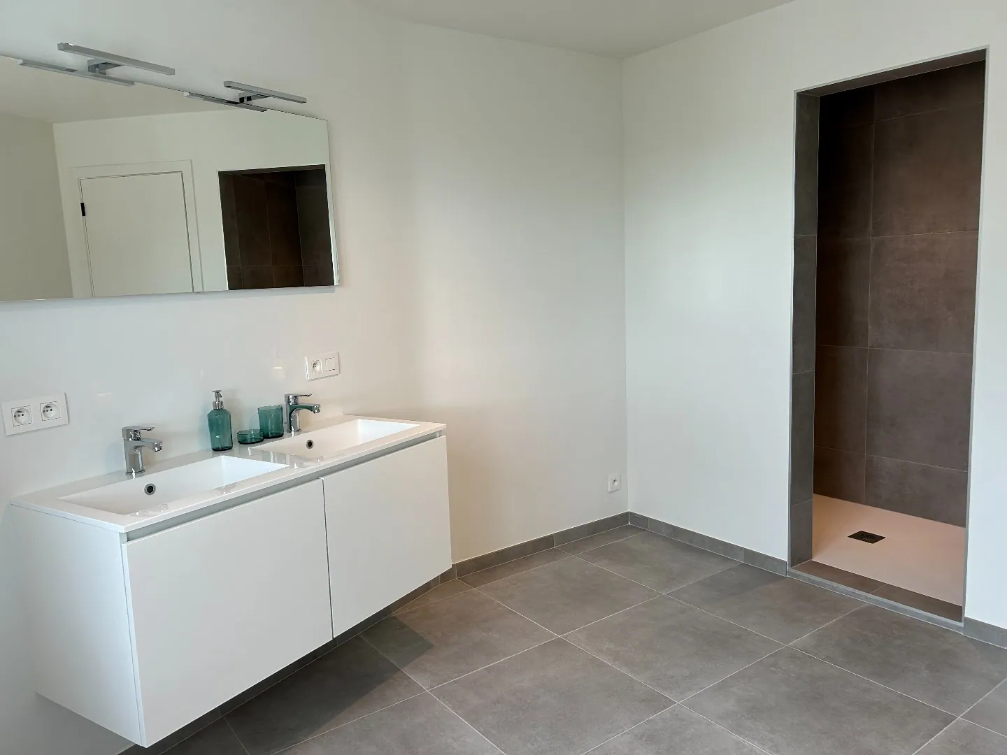 Verwarming via een lucht/water-warmtepomp, gelijkvloers en badkamer zijn voorzien van vloerverwarming. In de badkamer is er ook een extra handdoekradiator.