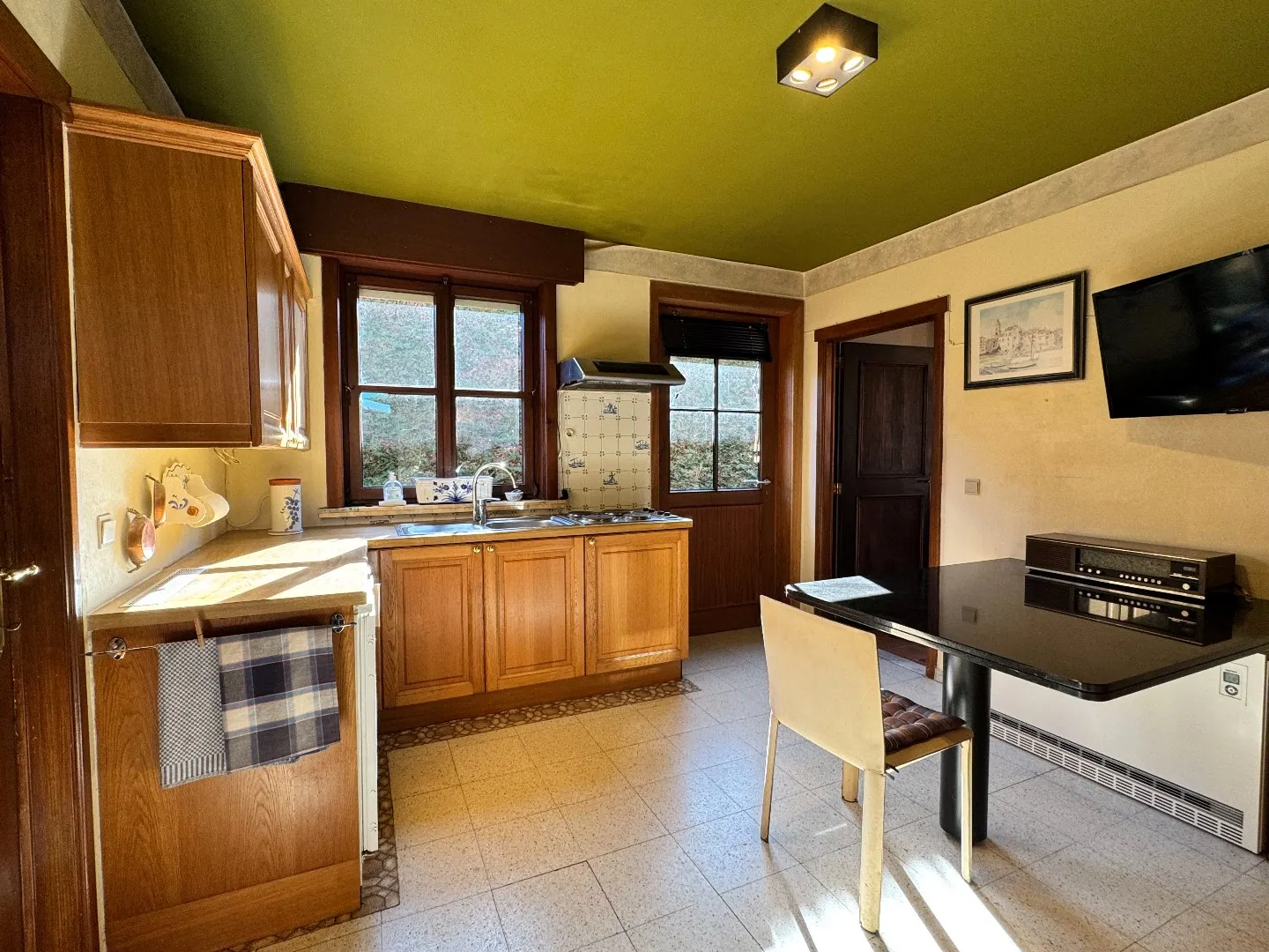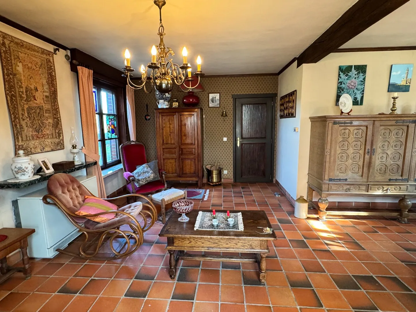 De leefruimte met zicht op de tuin vormt het hart van de woning. De ruimte straalt charme en gezelligheid uit dankzij de authentieke elementen. Vanuit de leefruimte heeft u rechtstreeks toegang tot de zonnige veranda waar het heerlijk vertoeven is tijdens elk seizoen.