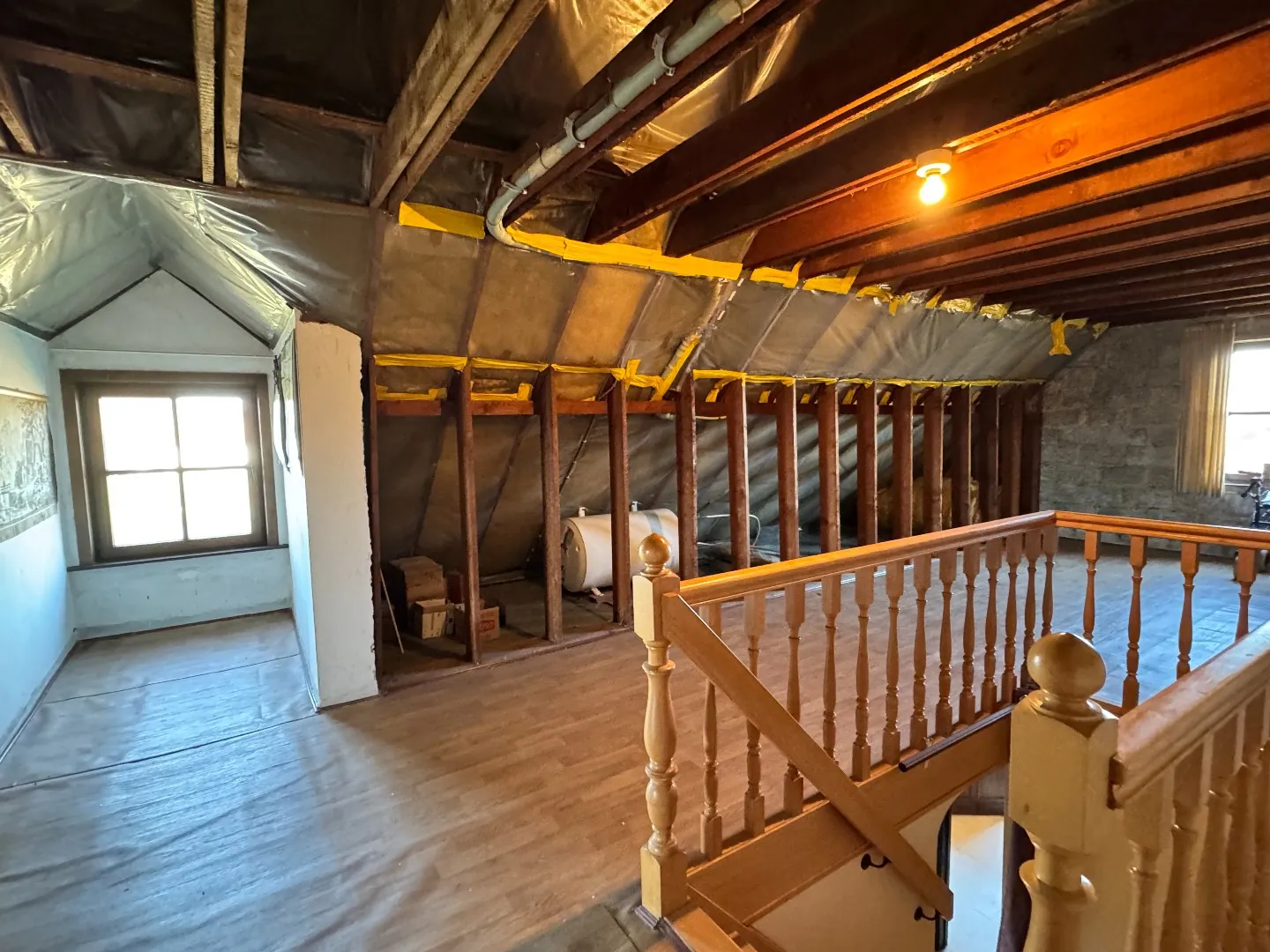 Via de vaste trap bereikt u het ruime verdiep. Momenteel is deze verdieping nog niet ingericht, maar ze biedt bijzonder veel potentieel. Hier kunnen eenvoudig meerdere slaapkamers, een hobbyruimte, bureau of een extra badkamer worden ingericht, volledig naar eigen wensen.
