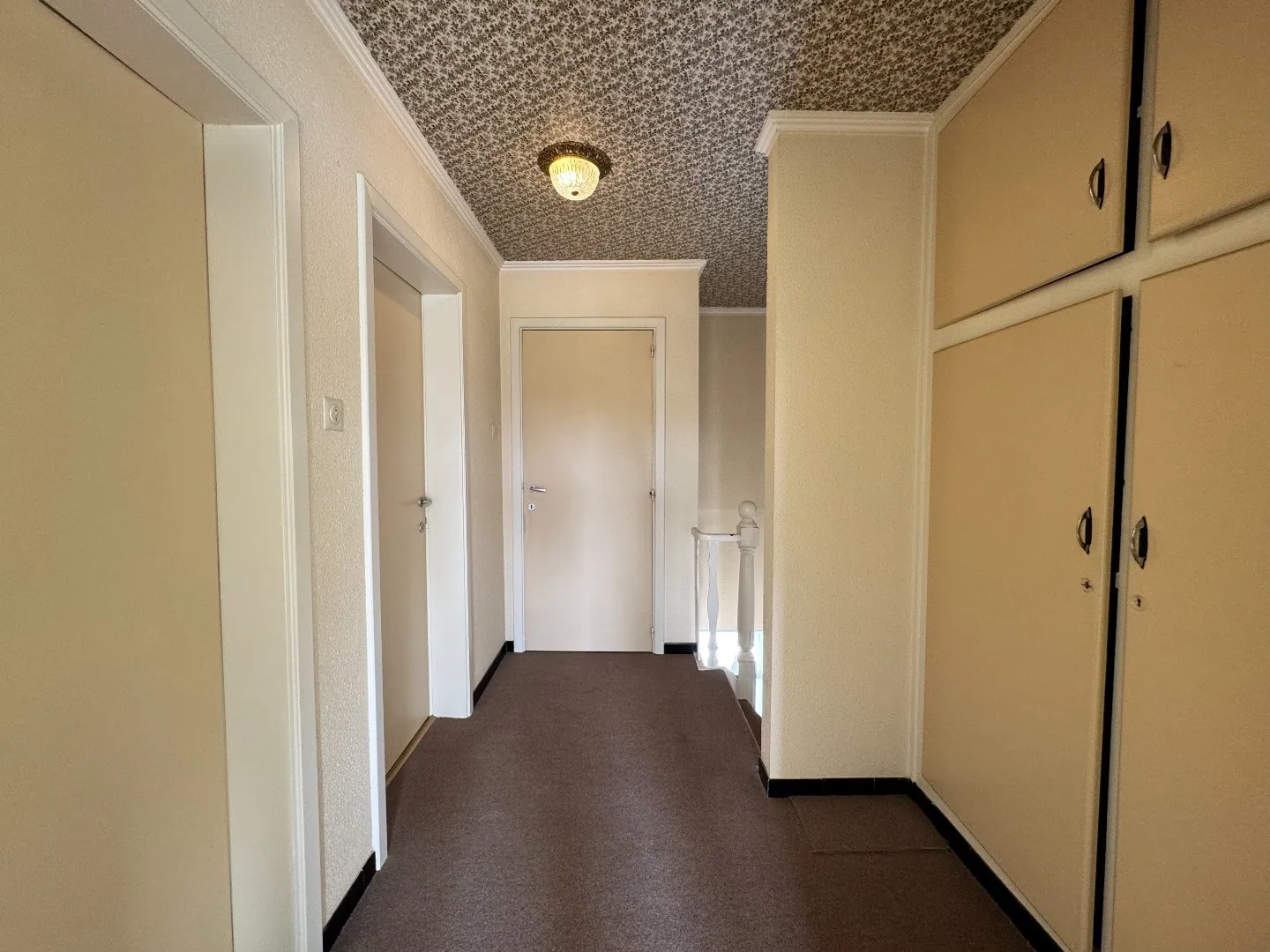 Op het verdiep komt u in de ruime nachthal met ingebouwde kasten die uitgeeft op de verschillende ruimtes. Er bevinden zich twee slaapkamers (waarvan een ruime en een kleinere kamer) aan de achterzijde van de woning en een derde ruime slaapkamer aan de voorzijde, samen met de badkamer die is uitgerust met een lavabo, douche en toilet.