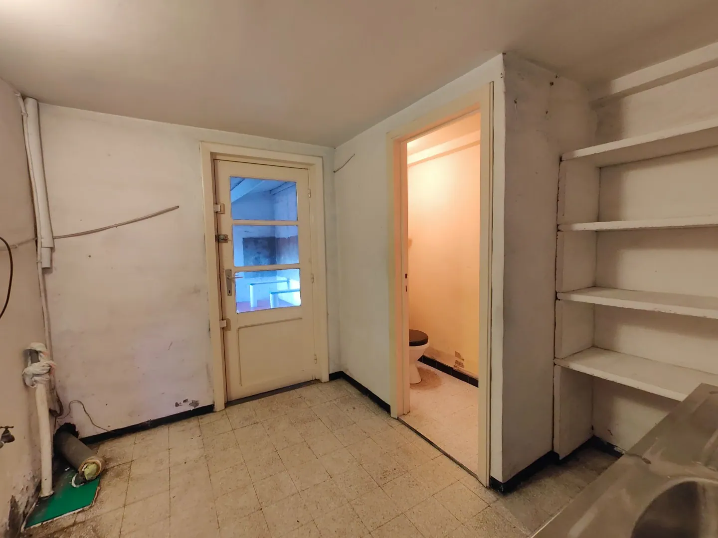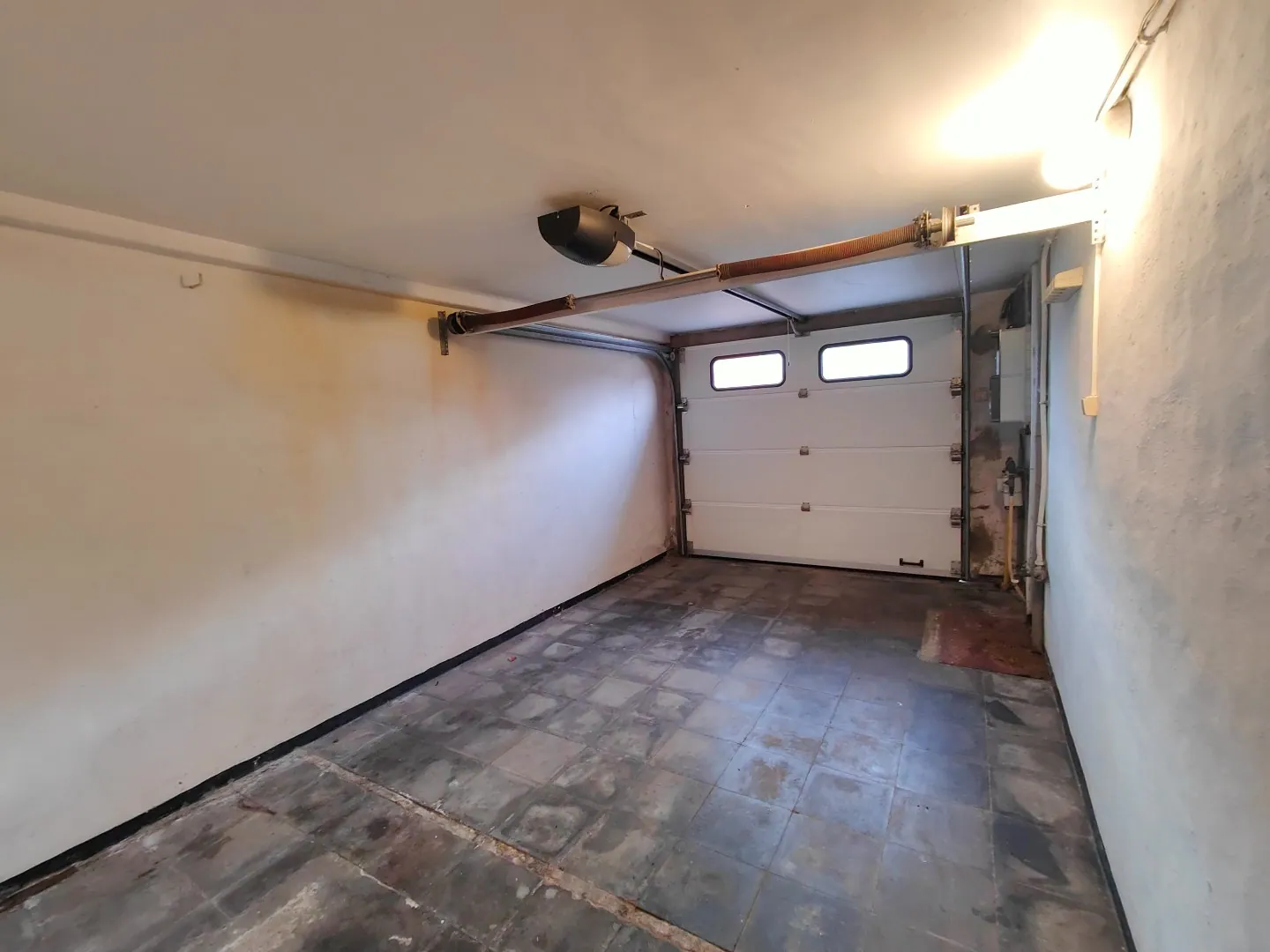 Deze licht op te frissen halfopen bebouwing op een perceel van 385 m² biedt veel ruimte en potentieel. De woning beschikt over een ruime inkomhal, een lichtrijke woonkamer en een aparte keuken met bergplaats en kelder. Op het gelijkvloers bevinden zich verder een wasplaats met toilet, een garage met automatische kantelpoort en twee extra bergplaatsen. Via de achterdeur bereik je de onderhoudsvriendelijke tuin.