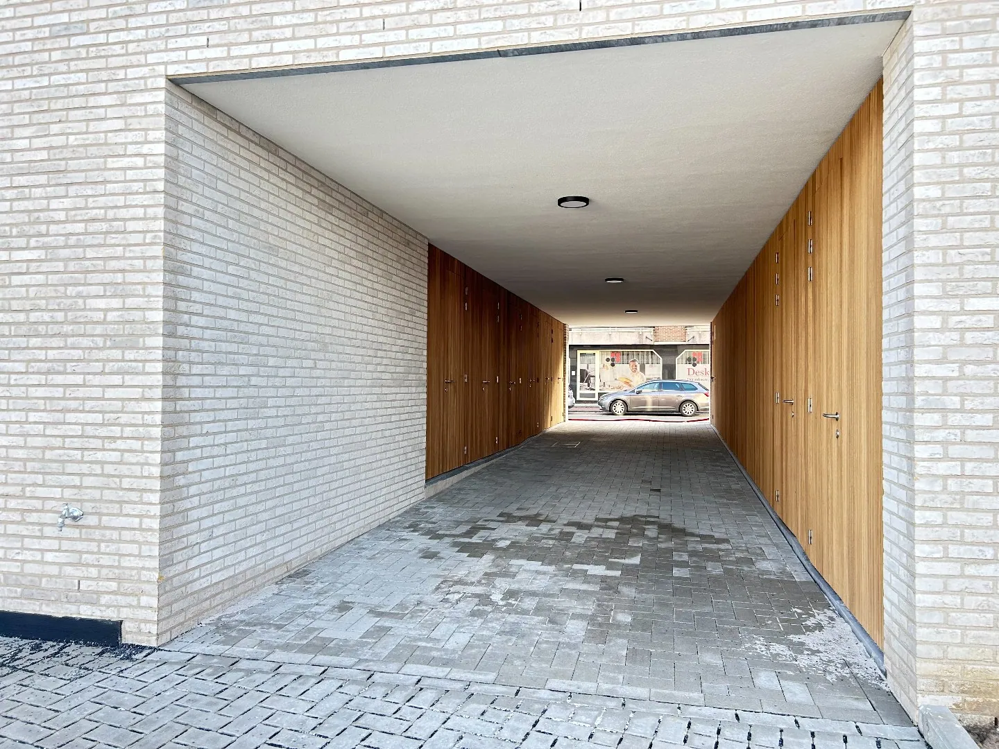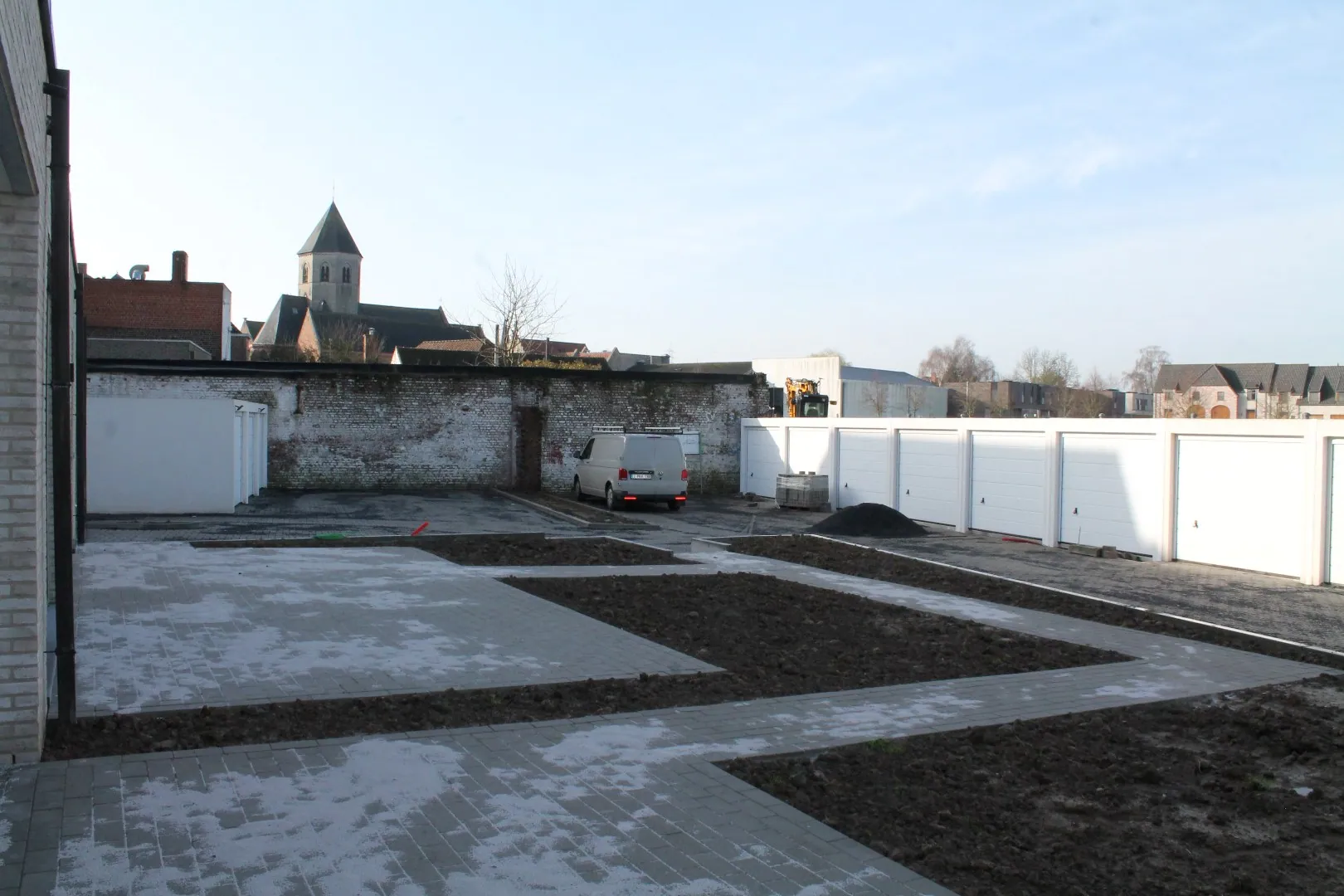 Er zijn 15 garages voorzien en 1 parkeerplaats voor minder mobiele personen. Aan parkeergelegenheid geen gebrek.
